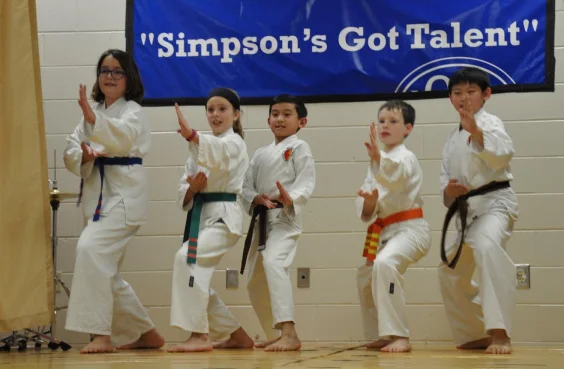 Five of our Children's Class Students attending Simpson Elementary recently raised money for charity by being a part of the school's "Talent Show". The demo team members practiced hard, and performed very well in front of the Simpson community!! The members were Cooper, Diane, Evan, Harris, and Isabella....Great JOB!! Check out the pictures and link to the Patch article below.
